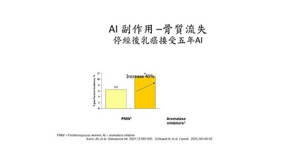 另外有時候妳如果本身停經,又吃芳香環酶抑制劑,比較容易有骨質流失的情況,這個是這類型的副作用。